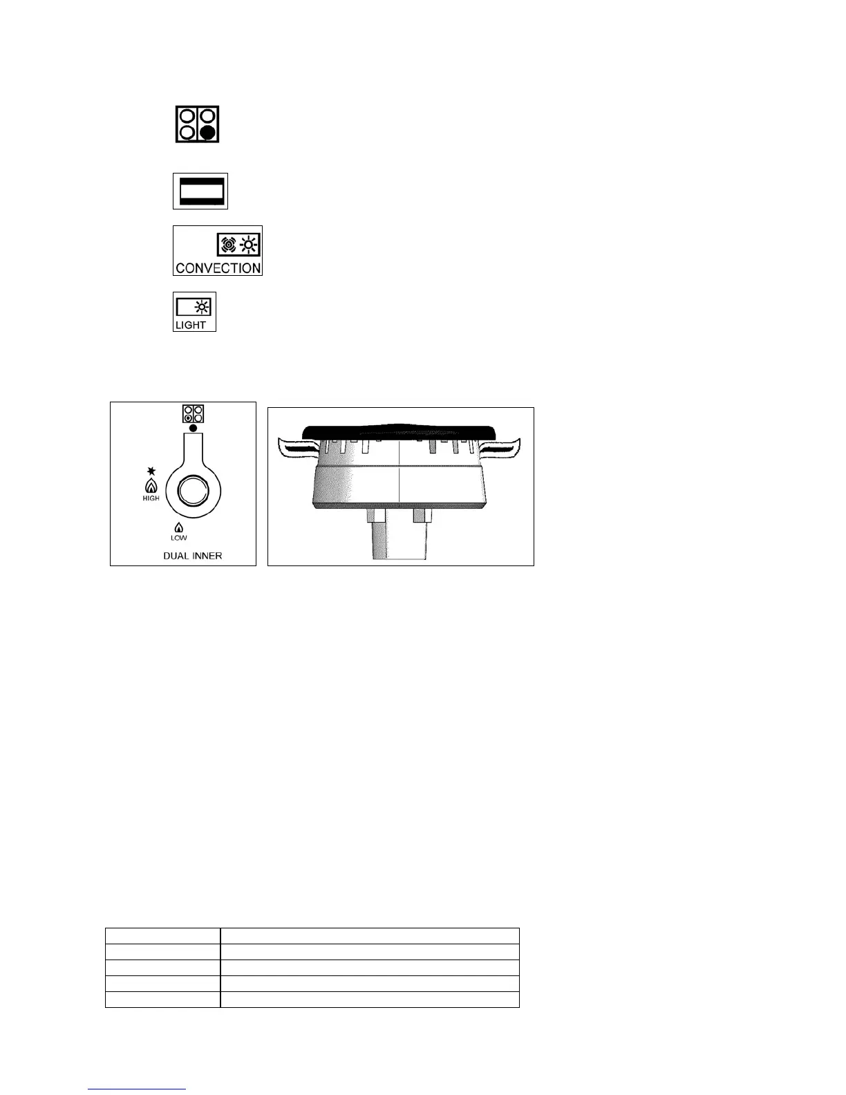 Note: Dual burner is composed by two burner (inside and outside); each one operates under the relative gas valve