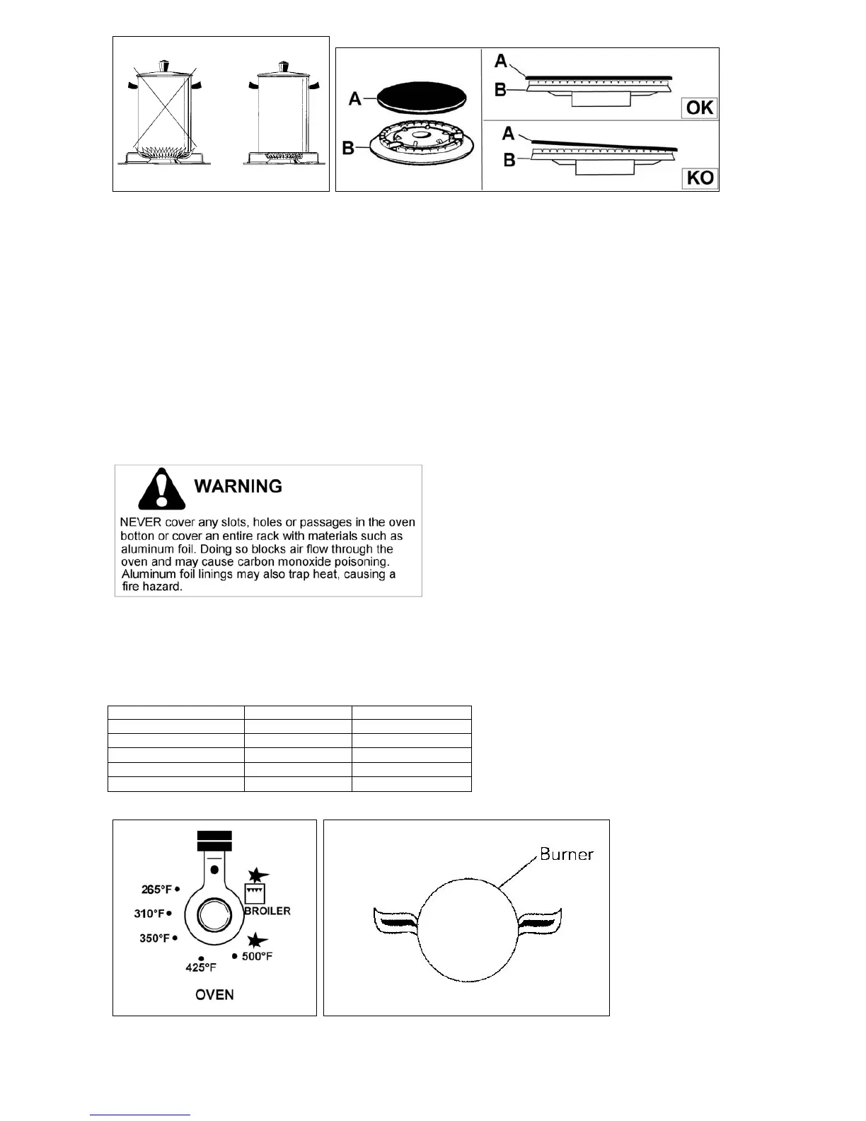 WARNING: If the burner flames are extinguished accidentally, turn off the control knob and do not try to relight