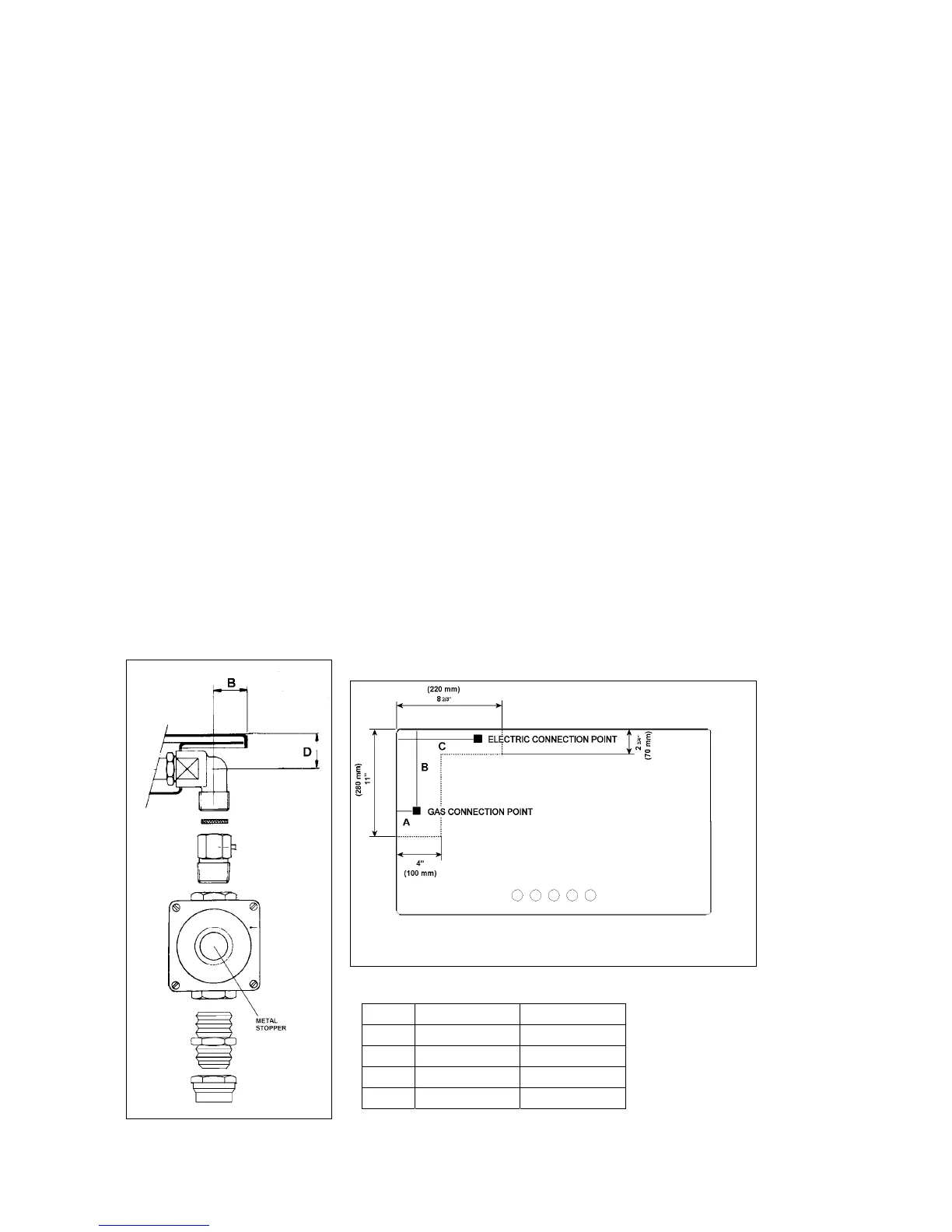 3. Avant d’installer la table de cuisson considérez la position de l’alimentation gaz et l’itinéraire de la ligne du