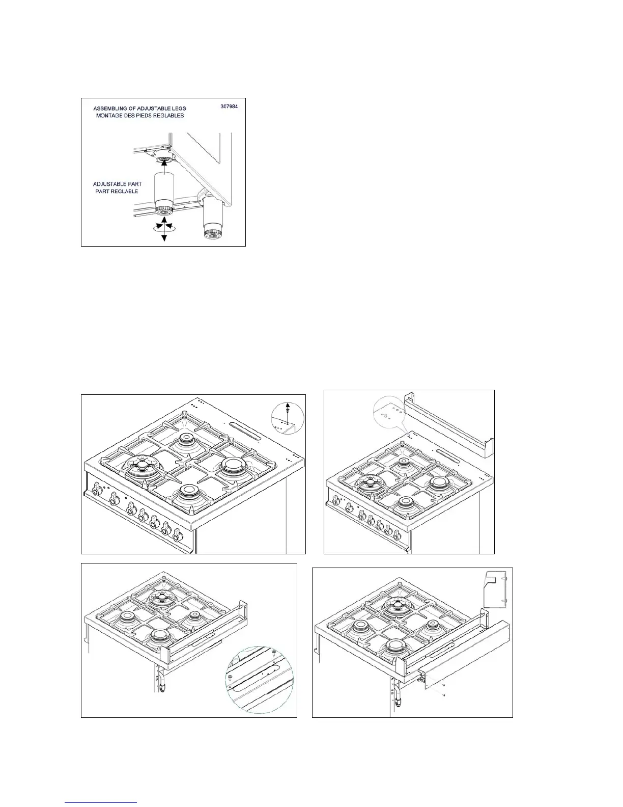 for long transport. After unpacking the range, raise it about a foot to insert the legs in their bases assembled