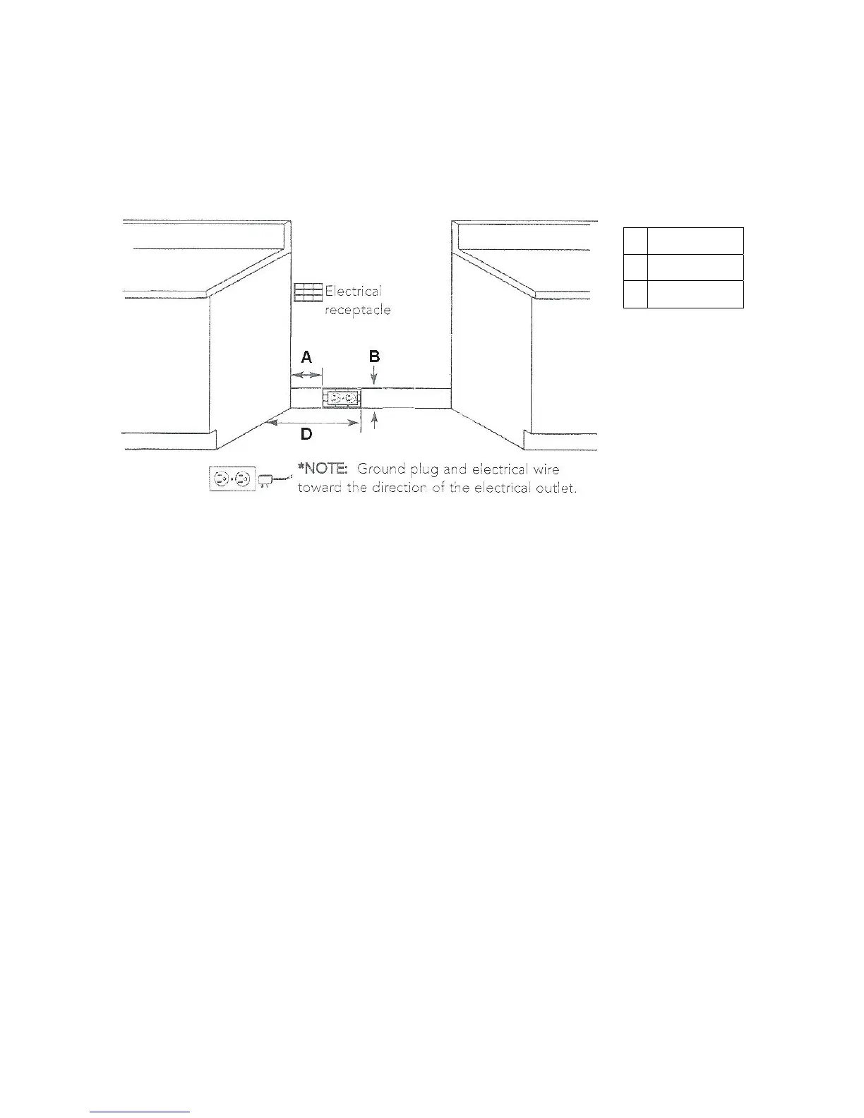 floor, no less than 2”( 5 cm) and no more than 8”(20,3 cm) from the right side (facing product). Check all local code