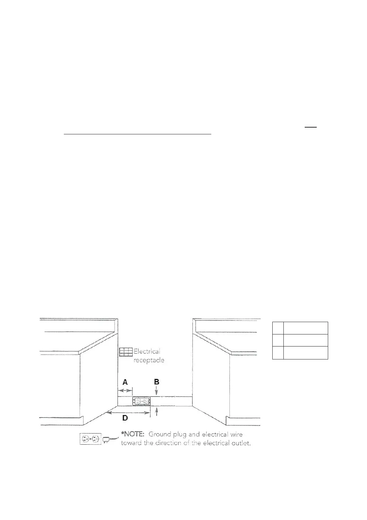 A properly-grounded horizontally- mounted electrical receptacle should be installed no higher than 3" (7.6 cm) above the