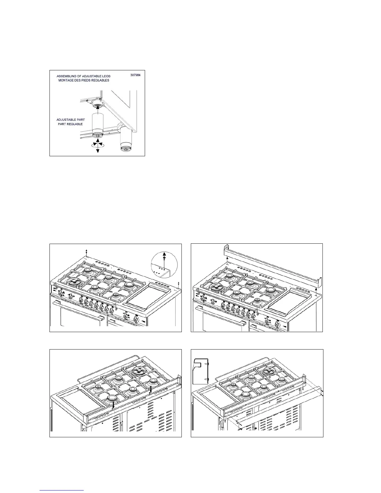 for long transport. After unpacking the range, raise it about a foot to insert the legs in their bases assembled