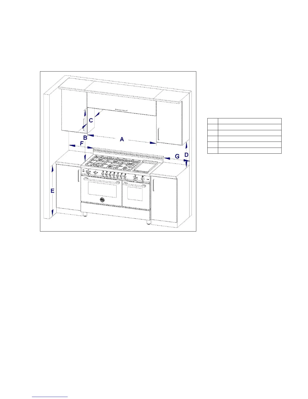 2. The range CANNOT be installed directly adjacent to sidewalls, tall cabinets, tall appliances, or other vertical