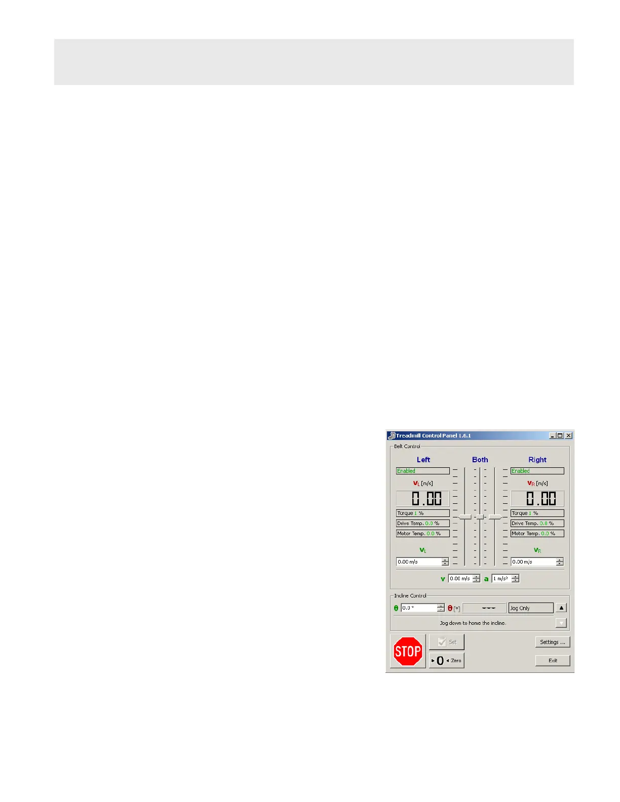 The treadmill is now ready to control. The treadmill is entirely controlled using only two windows: the Control Panel window and