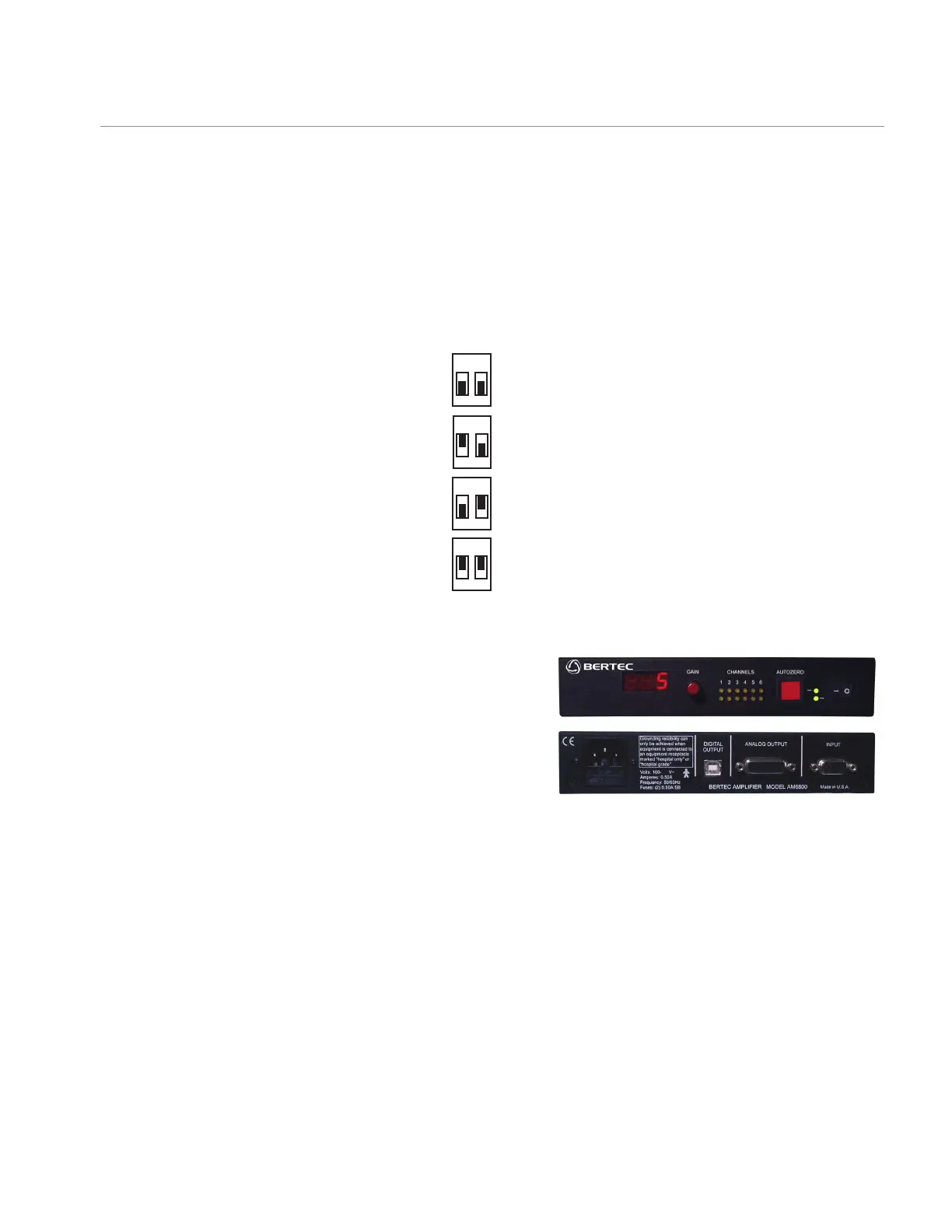 The AM6504 has two additional dipswitches on the top surface to set the gain for the output signal. Each switch has an on/off