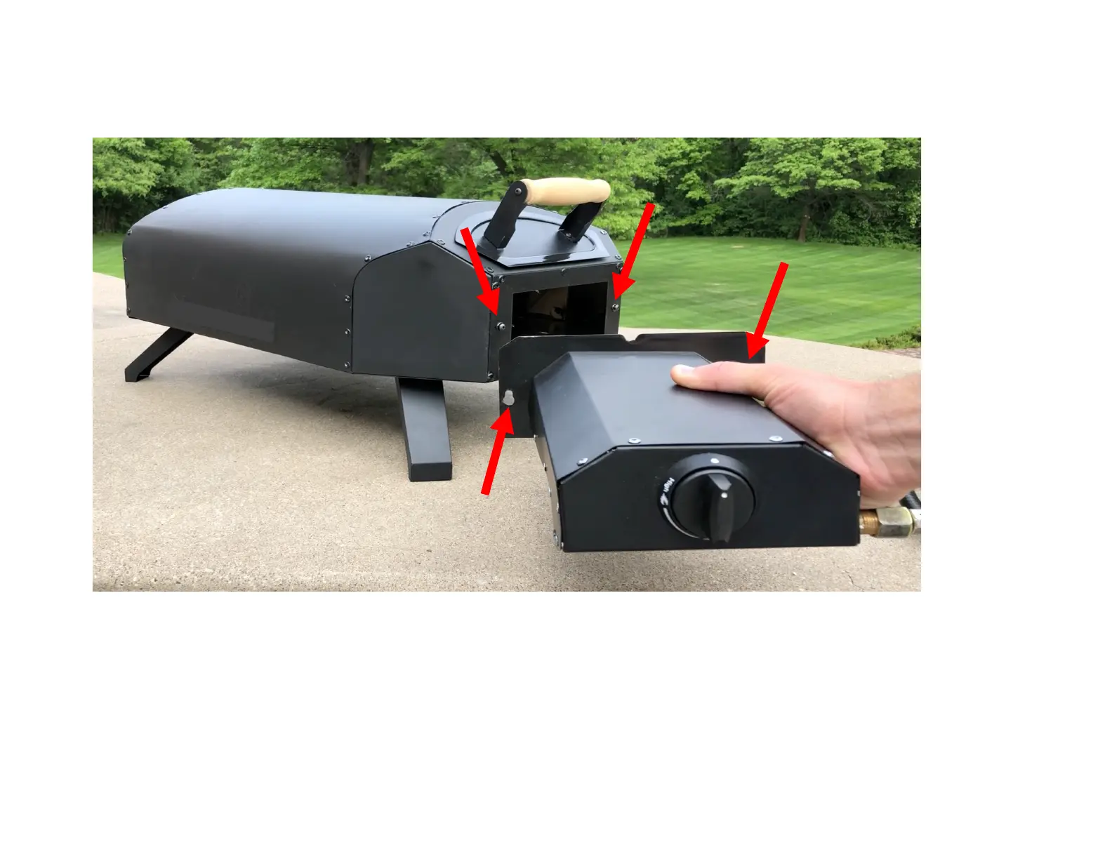 STEP 4 Slide gas burner into back opening of oven. Position two holes on gas burner