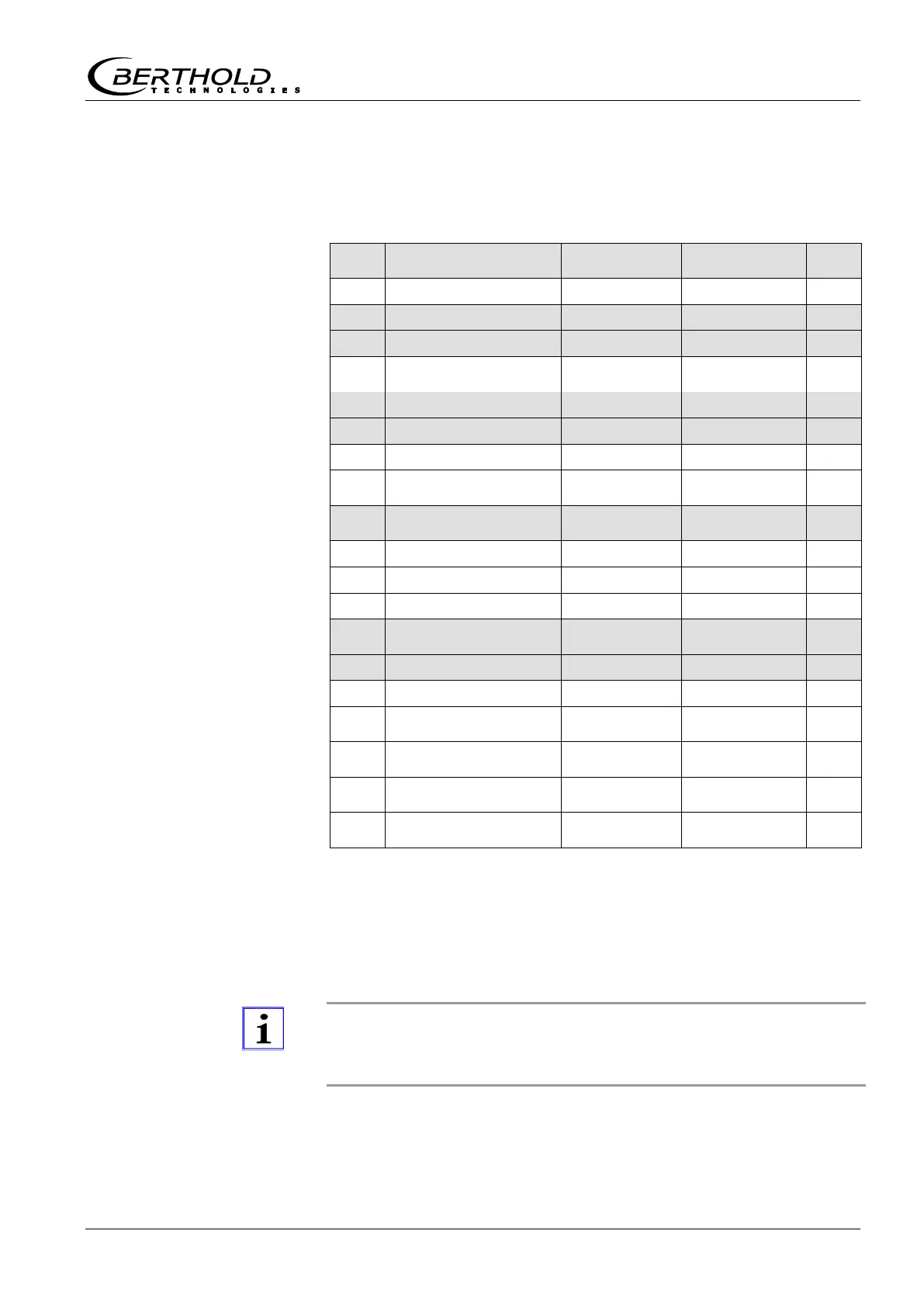 shaded parameters in the code table: