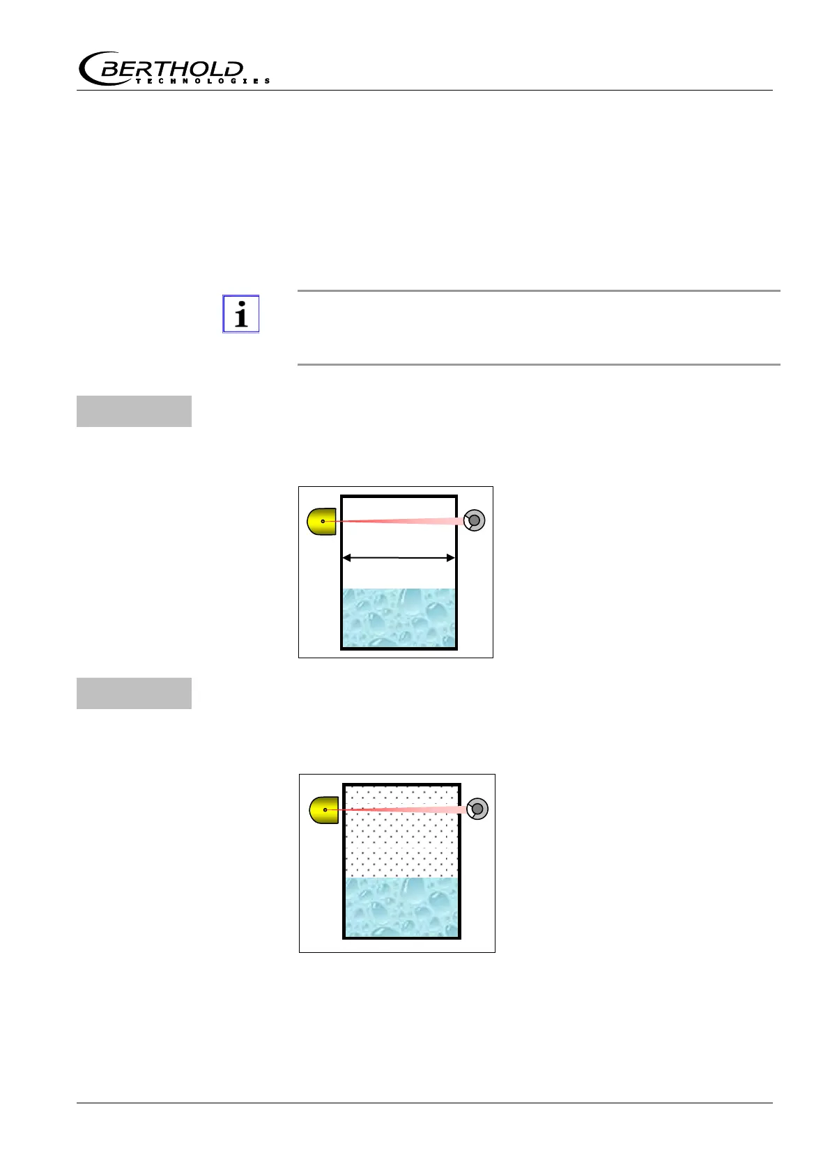 Enter container diameter or measuring path in the product