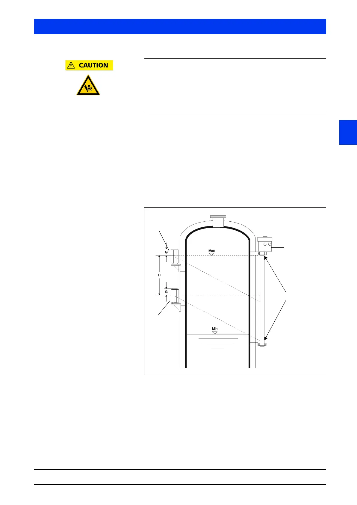 For large measurement ranges or vessels with small internal diam-