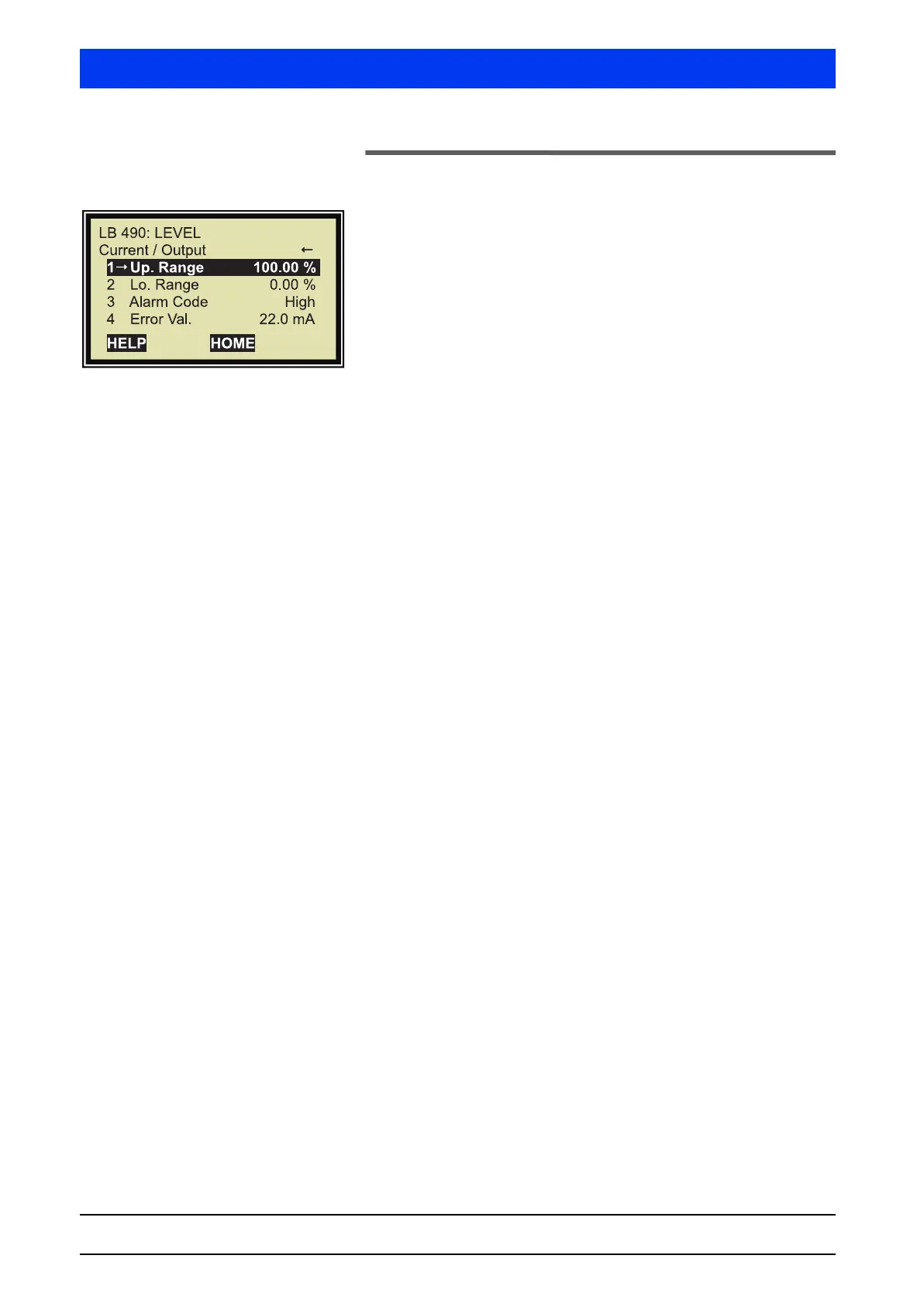 Enter the level for 20mA current output. Standard: 100%