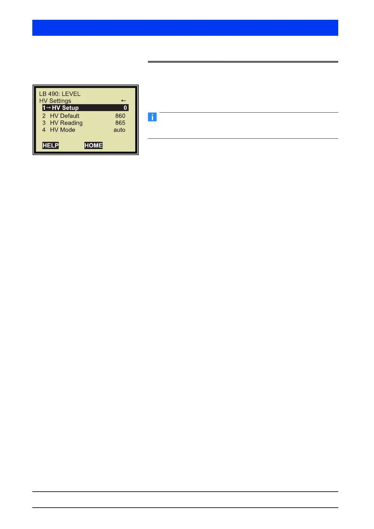 If the value in HV Setup = “0”, the HV mode is on auto.