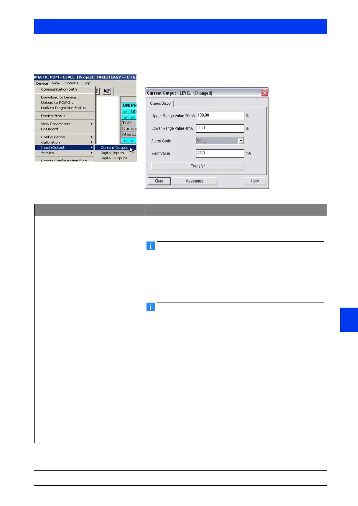 Alarm Code Operating mode for the current output in case of error.
