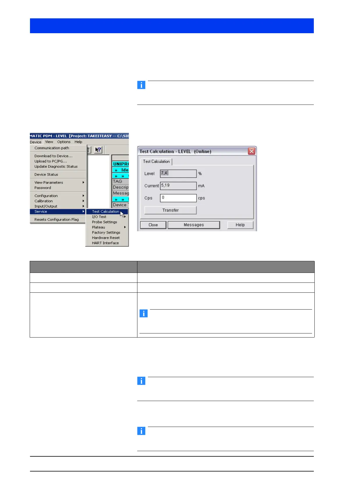 Perform test calculation.