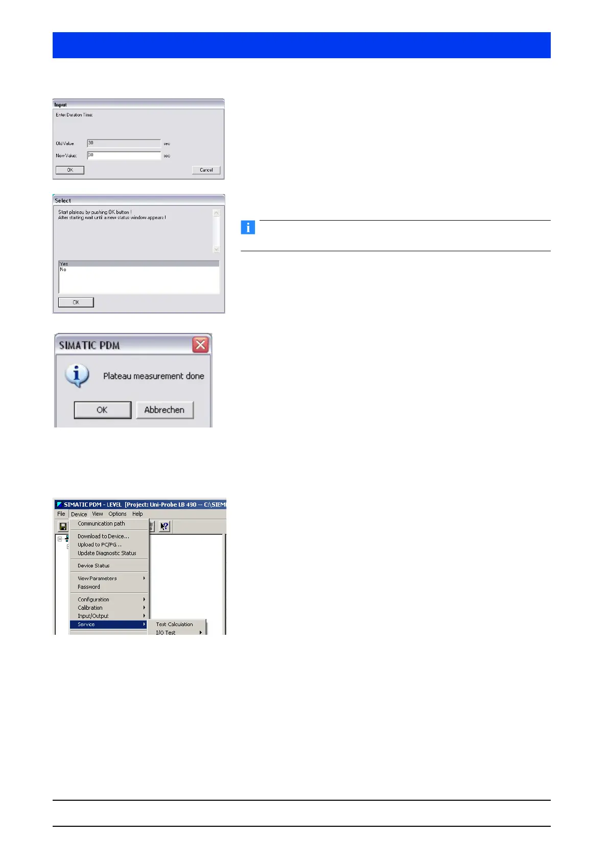 Select YES and click OK to start the plateau measurement.