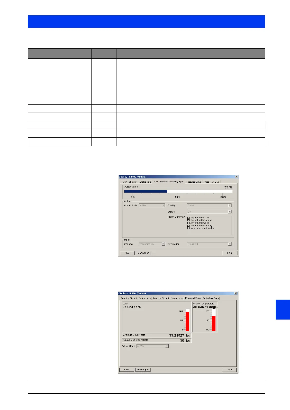 MEASURED VALUE Tab The MEASURED VALUE dialog box shows you „live“ the currently