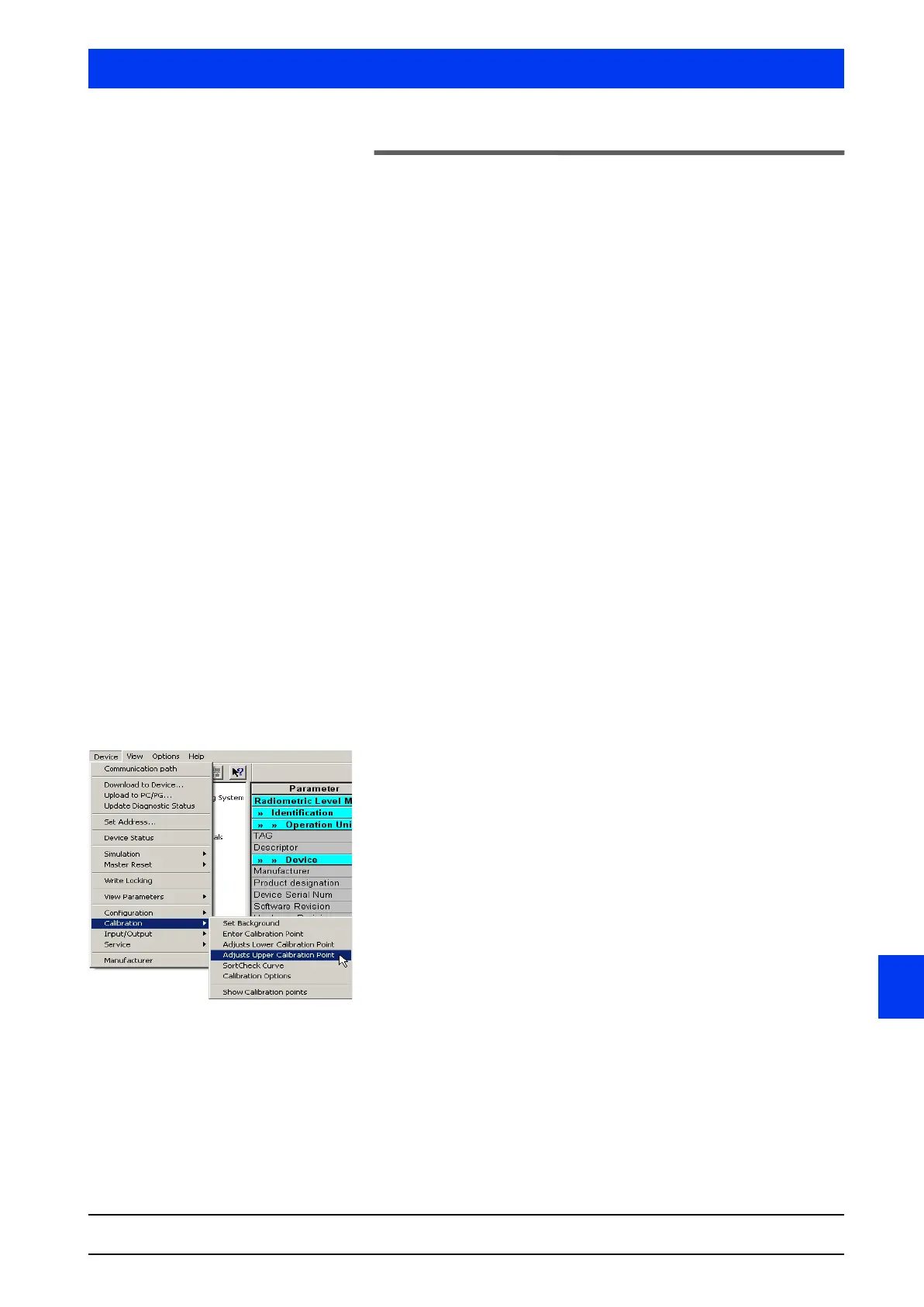 Select DEVICE CALIBRATION ADJUSTS UPPER CALIBRATION