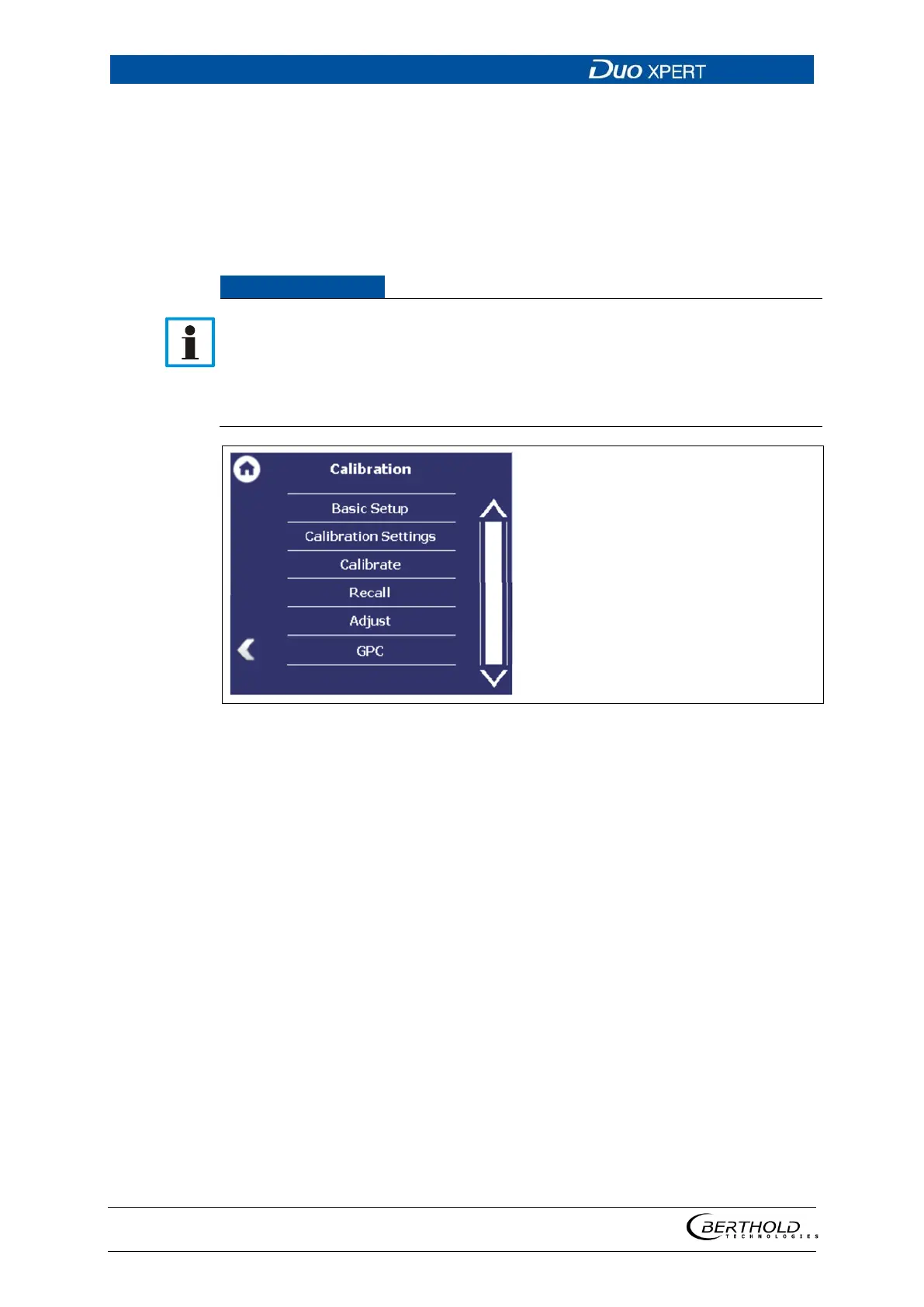The Calibration menu is used for the selection of the calibration and calculation