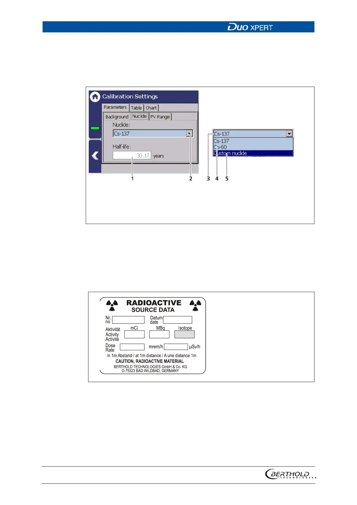 3. When selecting ″Custom nuclide″ (Fig. 83, item 5), the half-life of the isotope