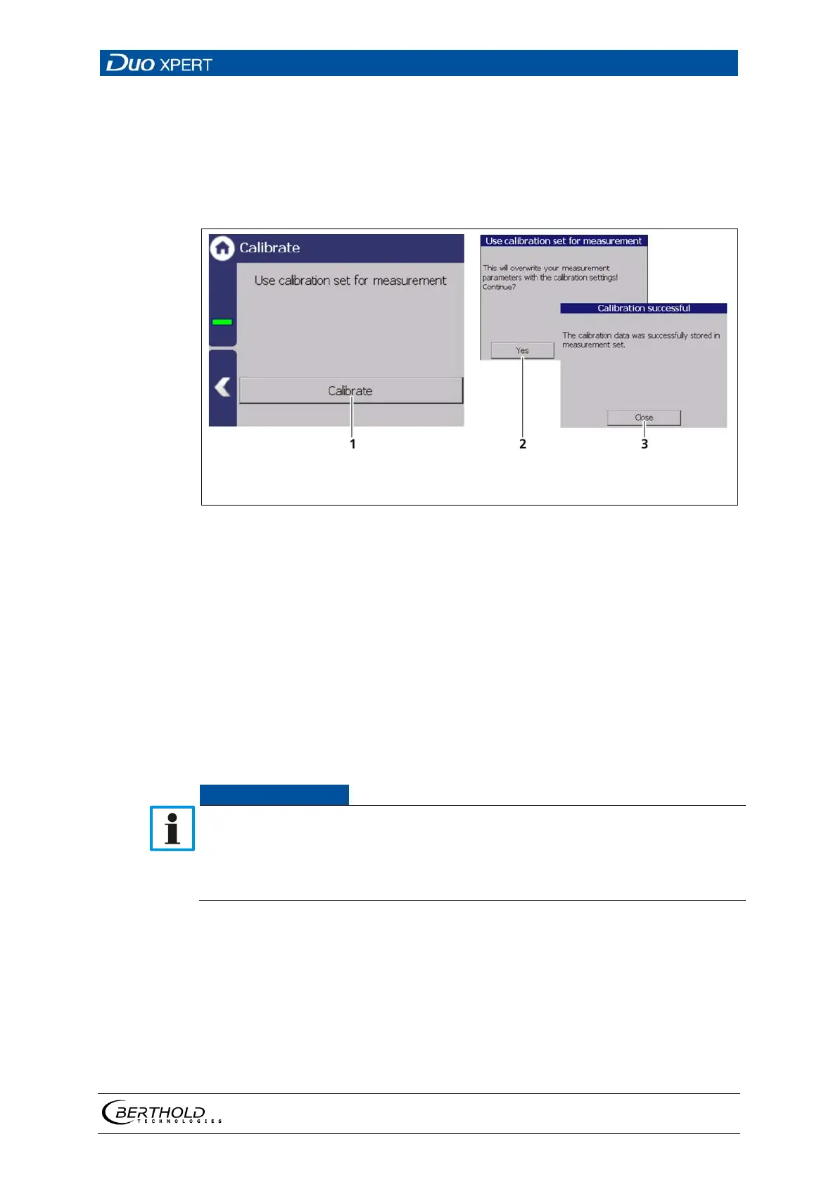 measurement parameter set when the button "Calibrate" is clicked. Only after this
