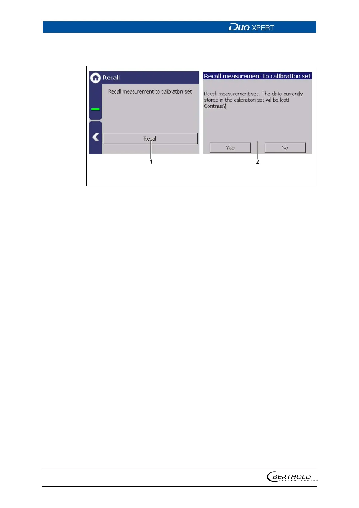 2. The window with the message ″Recall measurement to calibration set″ ap-