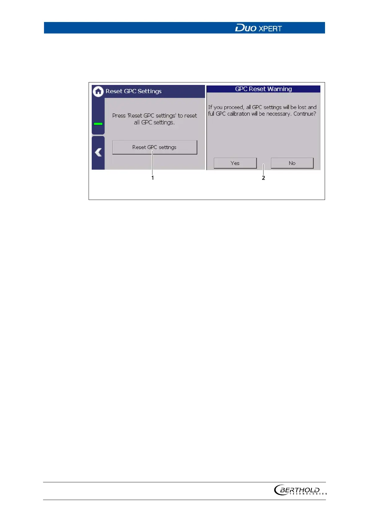 Device settings | Setup | Calibration | GPC | Reset GPC