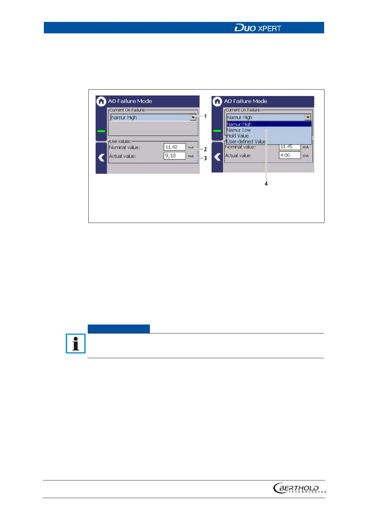 Device settings | Setup | Output | Analog Output (AO) | AO Failure Mode