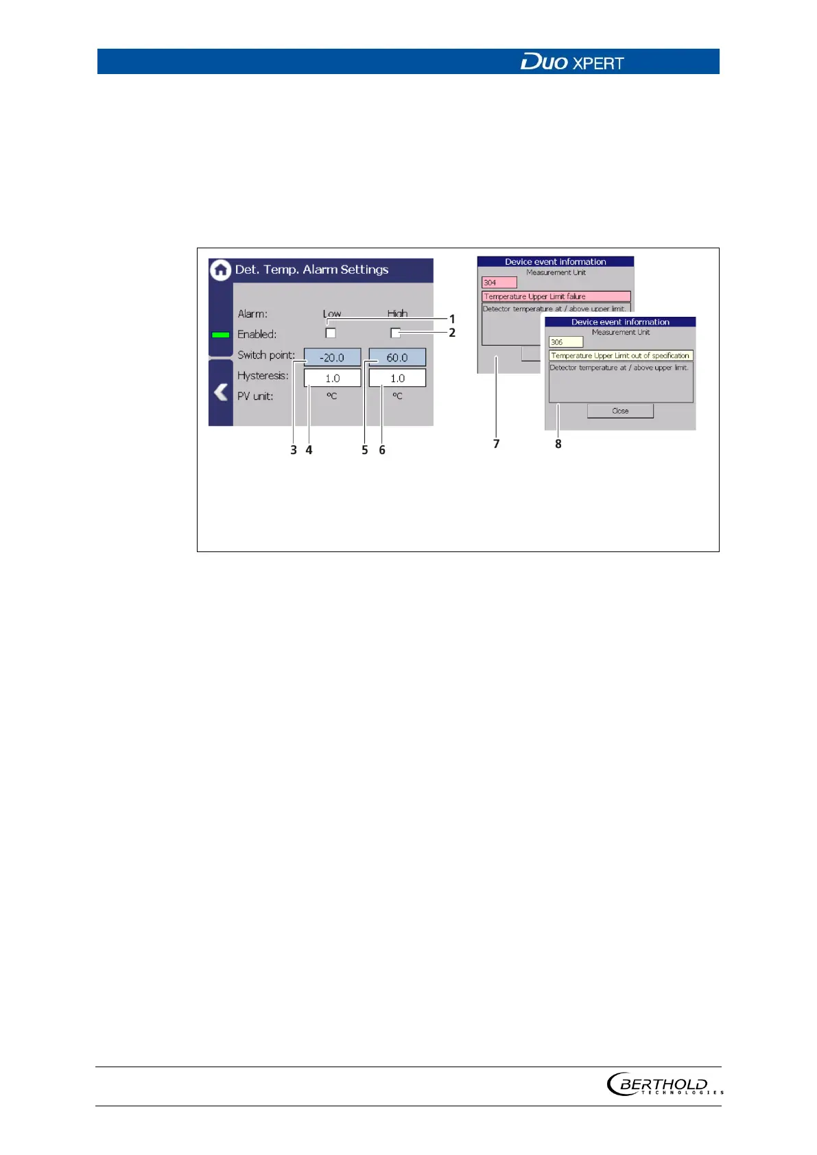appears in the status display. If a digital output ″Detector temperature alarm″ is