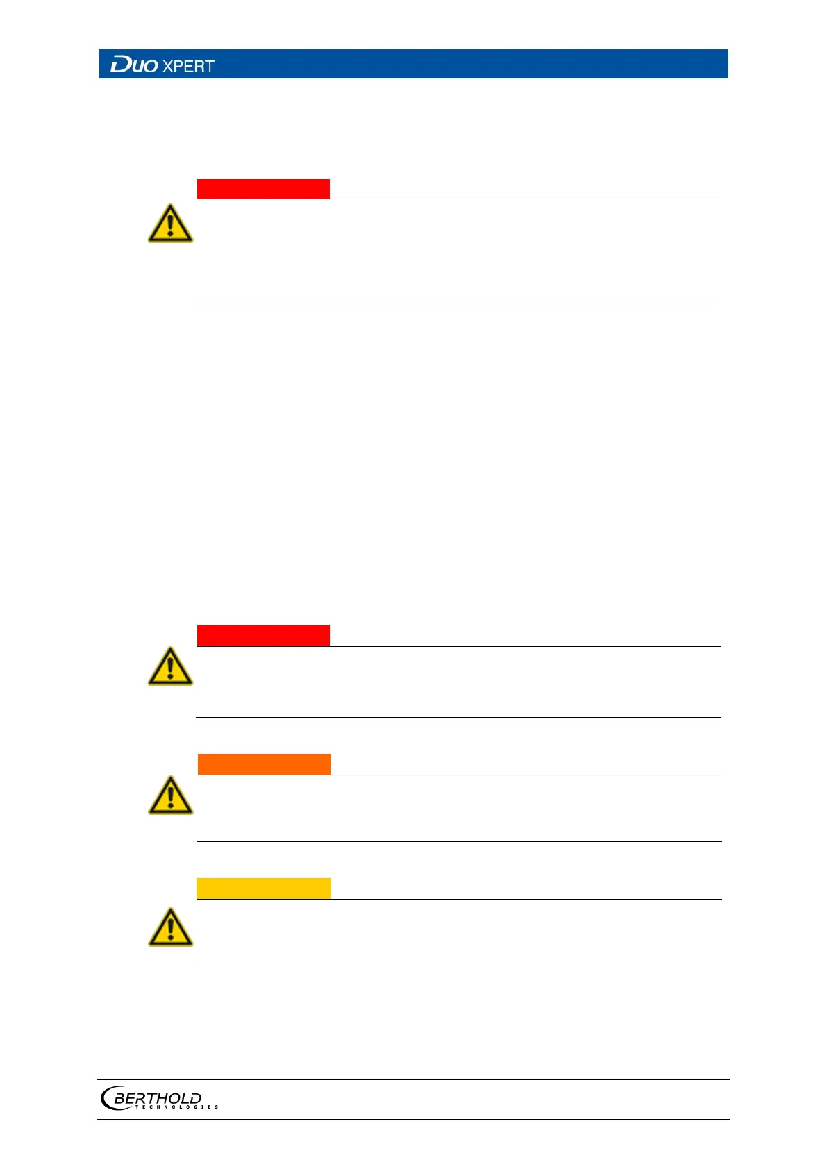 • Warning symbols: (warning triangle) draws attention to the hazard.