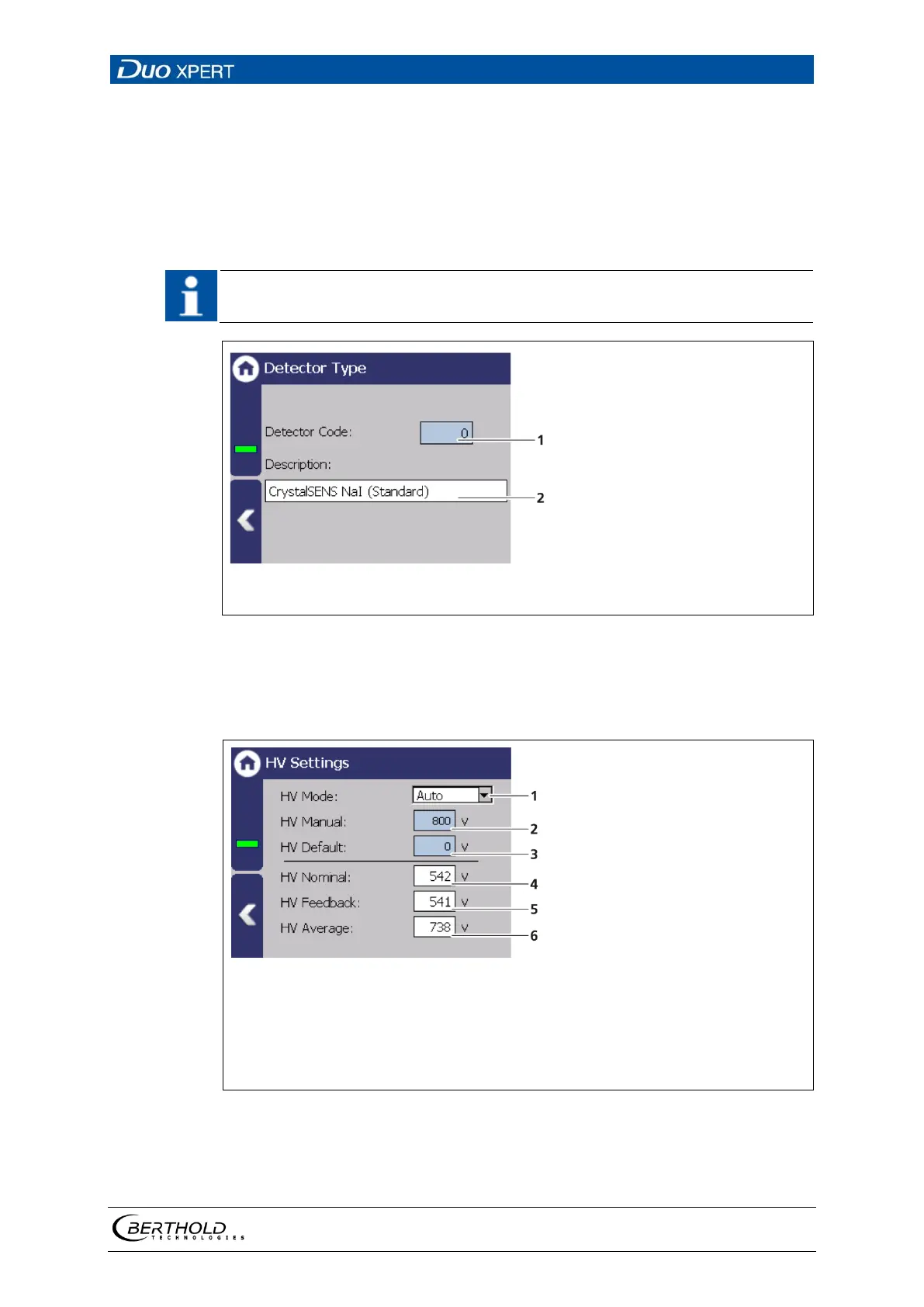 Device settings | Setup | Sensors | [NAME DETECTOR] | High Voltage | Detector Type