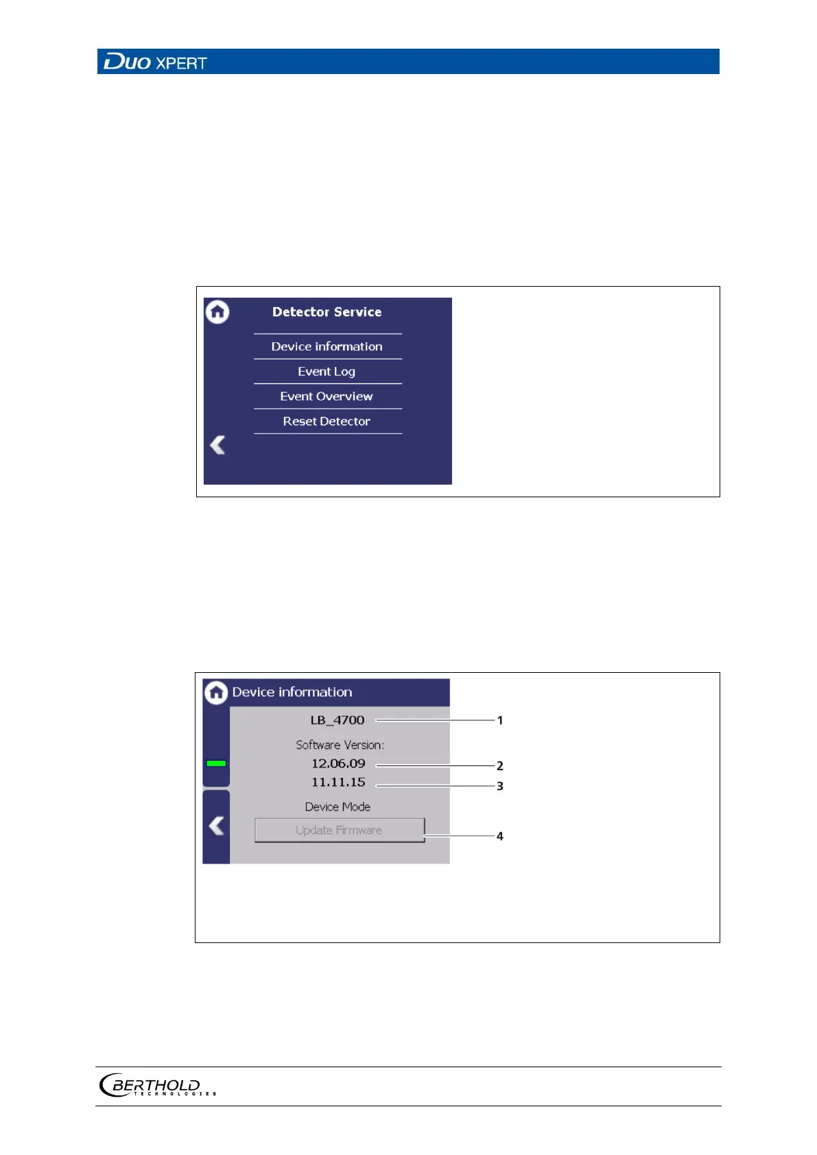 of the software version (Fig. 74, item 2, item 3) of the detector.