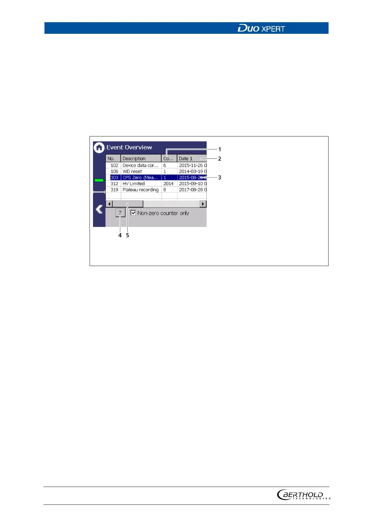 submenu "Event overview". Activate the check box "Non-zero counter only" in