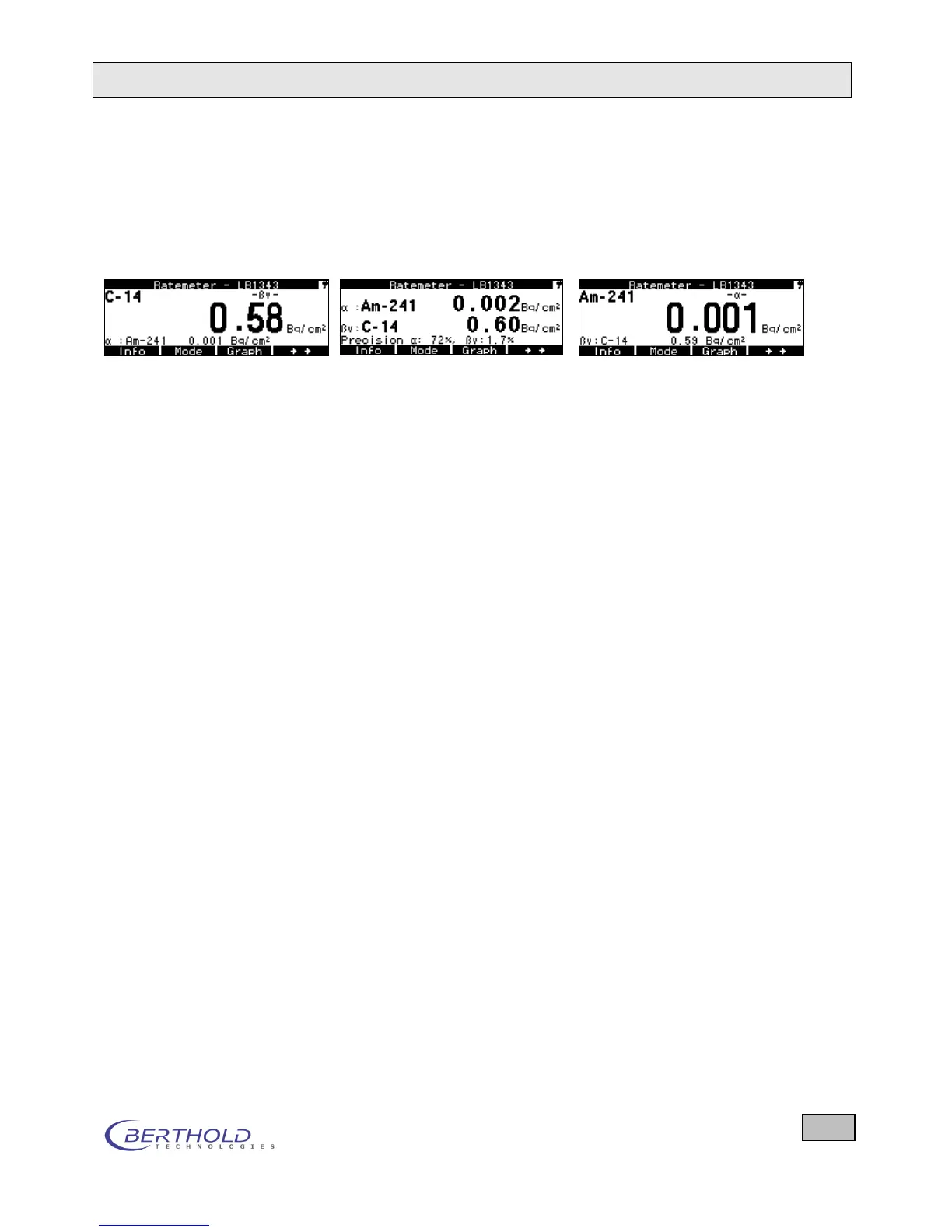 Ratemeter: During measurement: Nuclide, Save, Menu, Info, Mode,