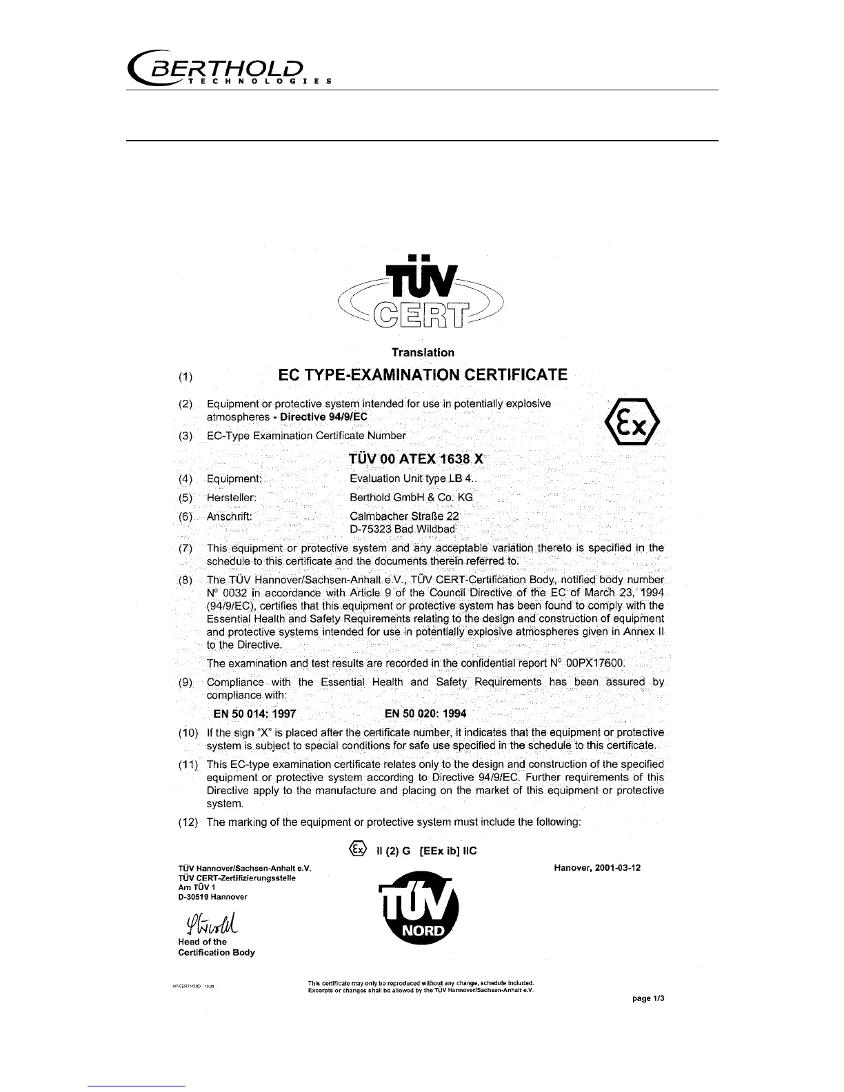 Berthold LB 442 - Section 13 Appendix; Certificates