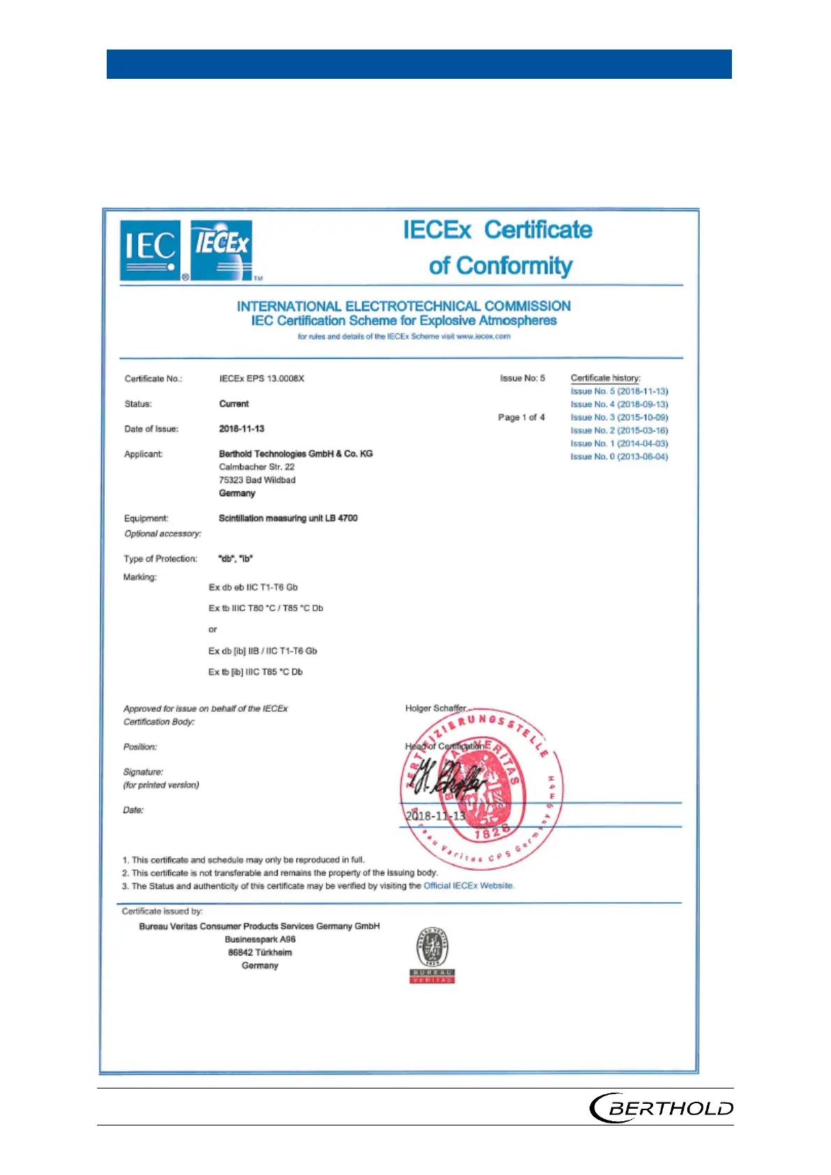 Berthold LB 4700 - 13 Iecex Certificate