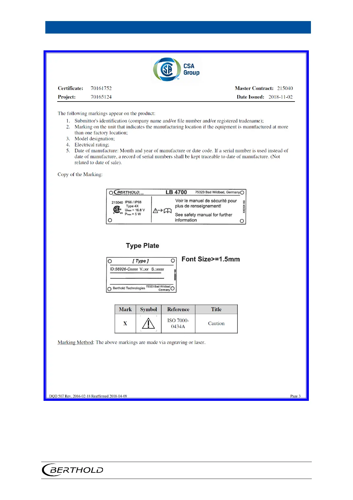 Safety Manual / Explosion Protection Manual 15 NEC/CEC OrtLoc Certificate