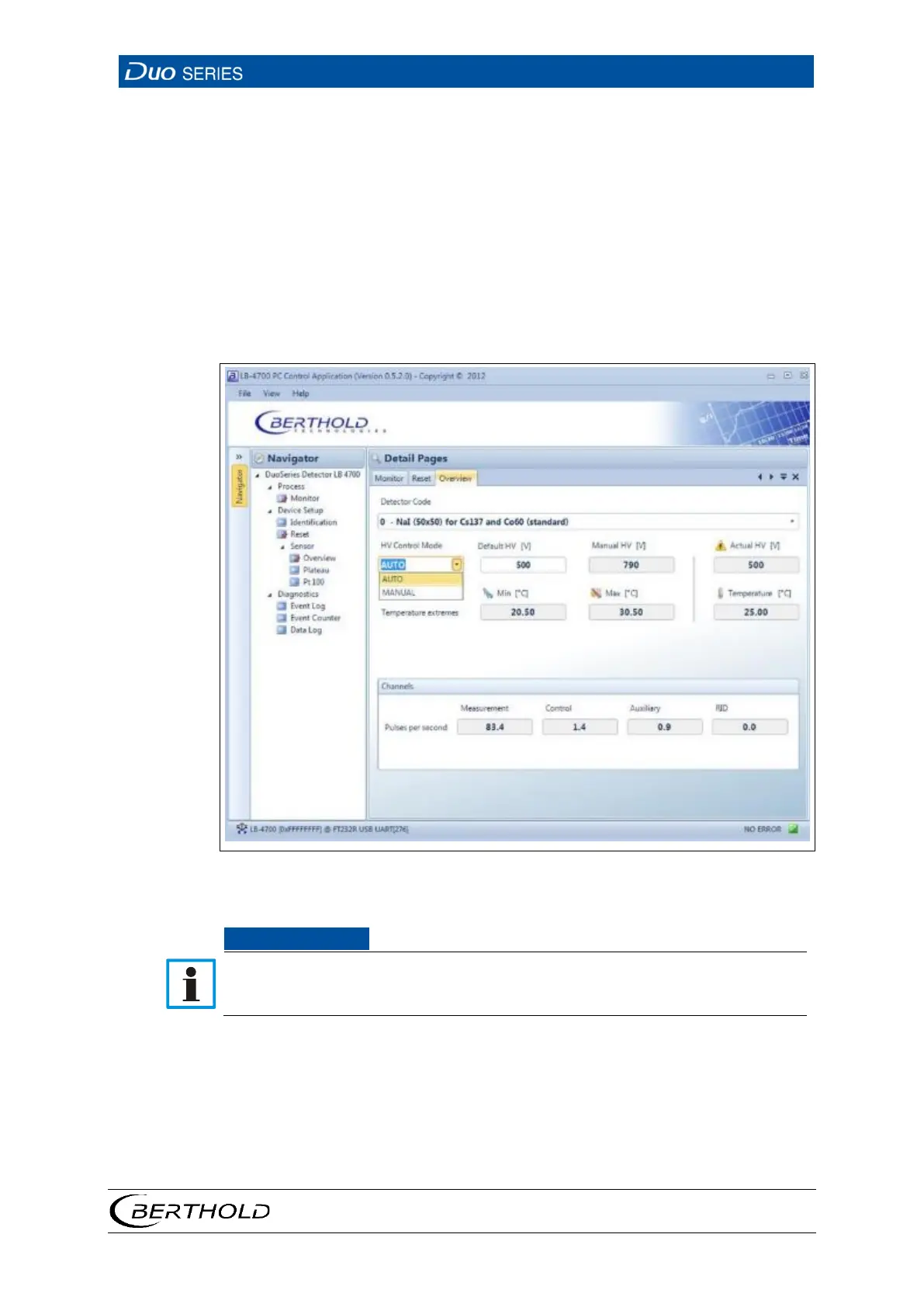 Default HV is preset by BERTHOLD. A subsequent change is not usually neces-