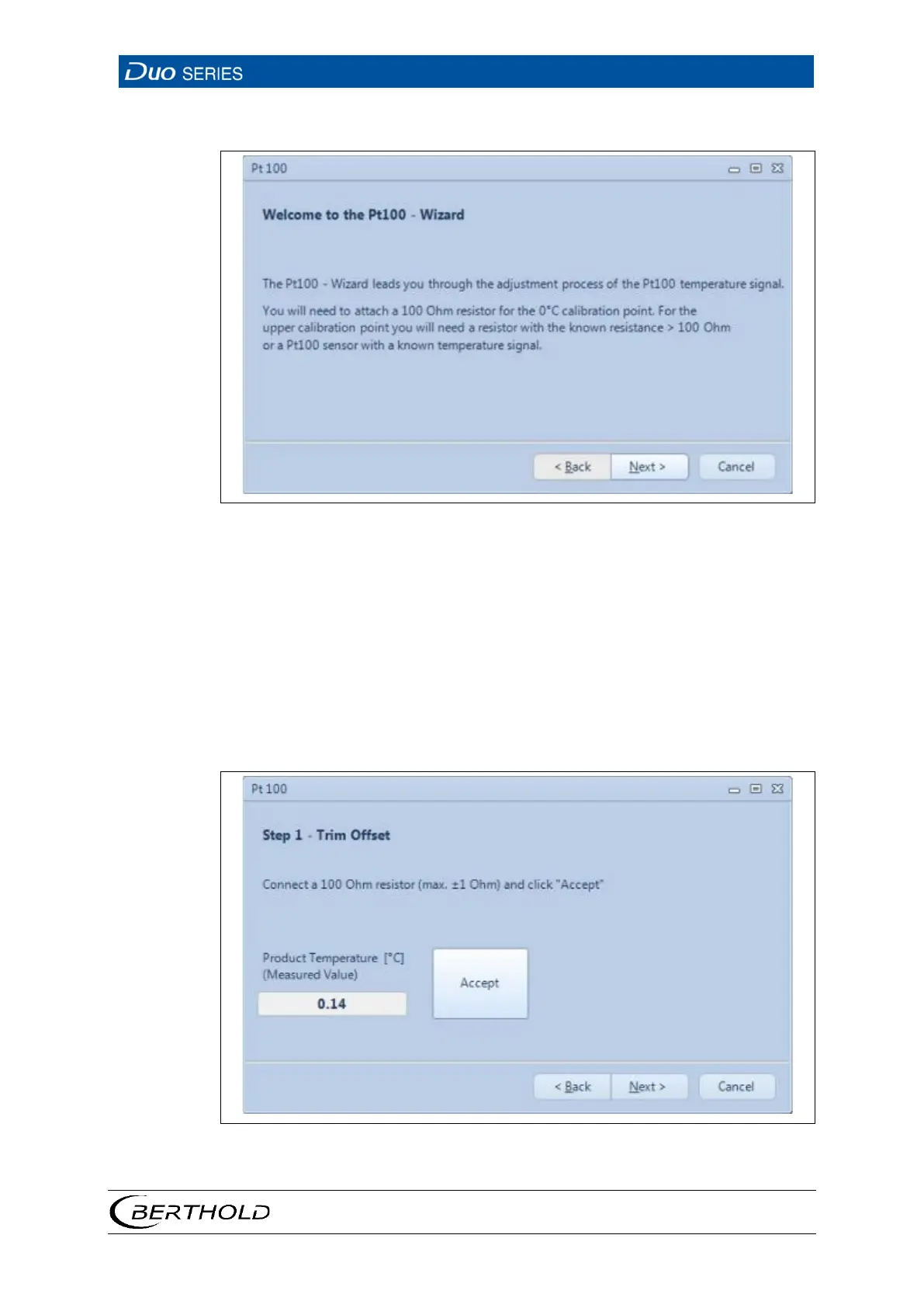 u A window opens. The Pt100 wizard guides you through the calibration pro-