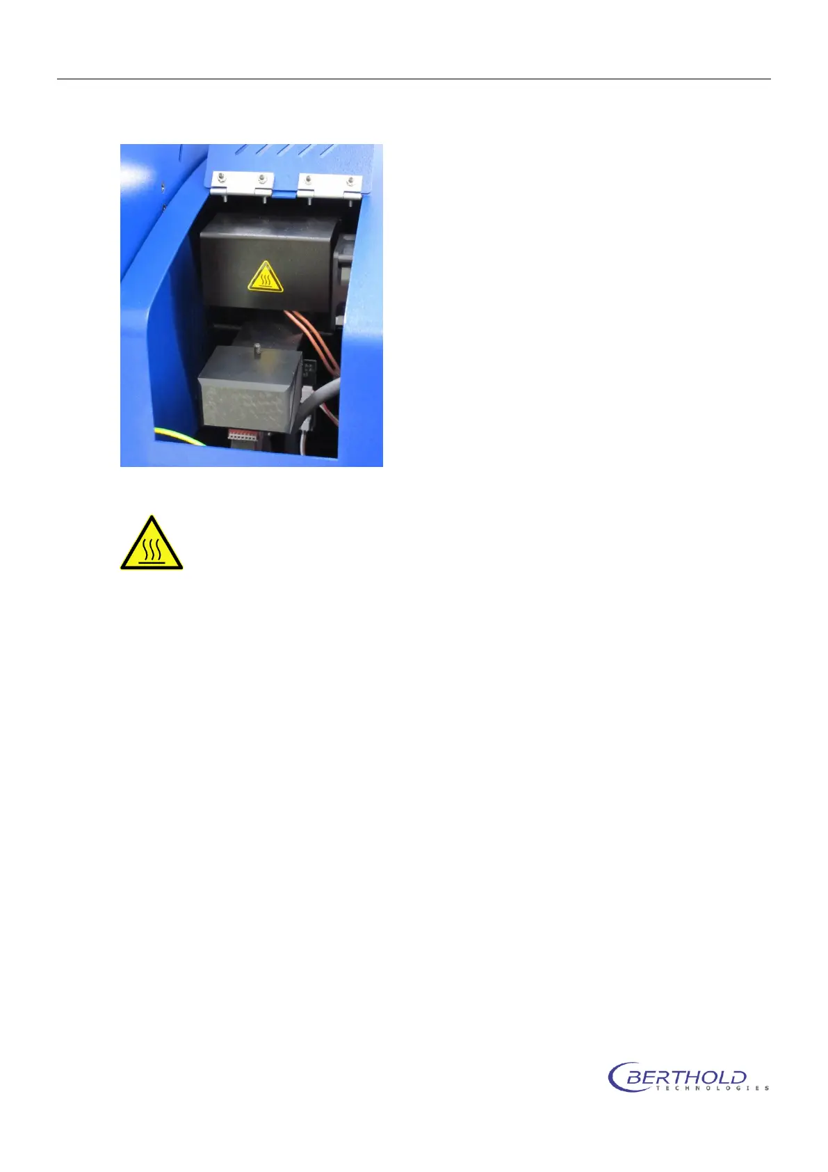 The halogen lamp is located close to the excitation filters. It is protected by a black cover plate.