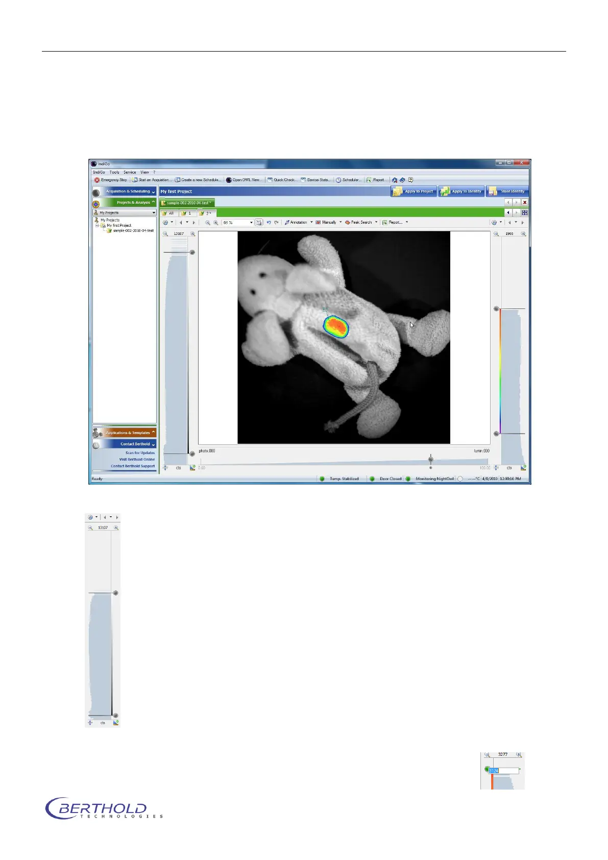 the pseudocolor signal image can be set. The top slider defines which intensity value