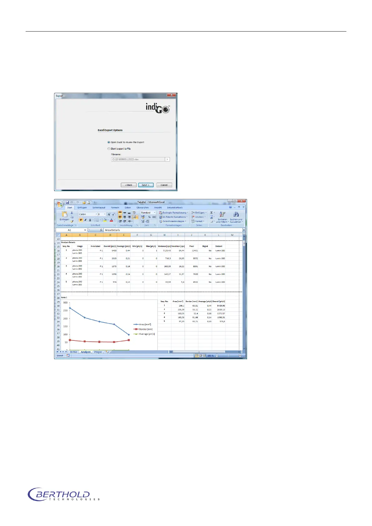 The “Analysis” sheet contains all measurement results and the diagrams, depending on the set-