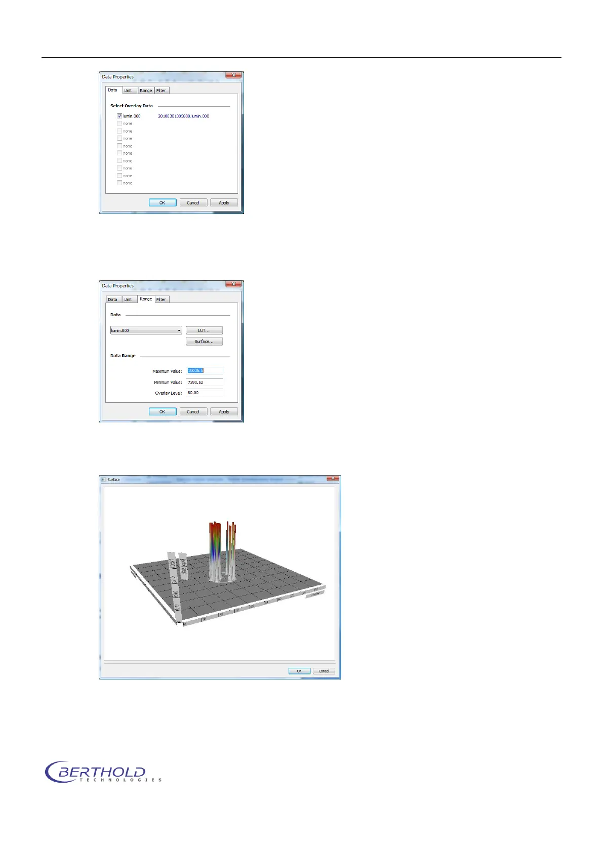 For further analysis a LUT and a surface is supported. In addition the overlay intensity can be