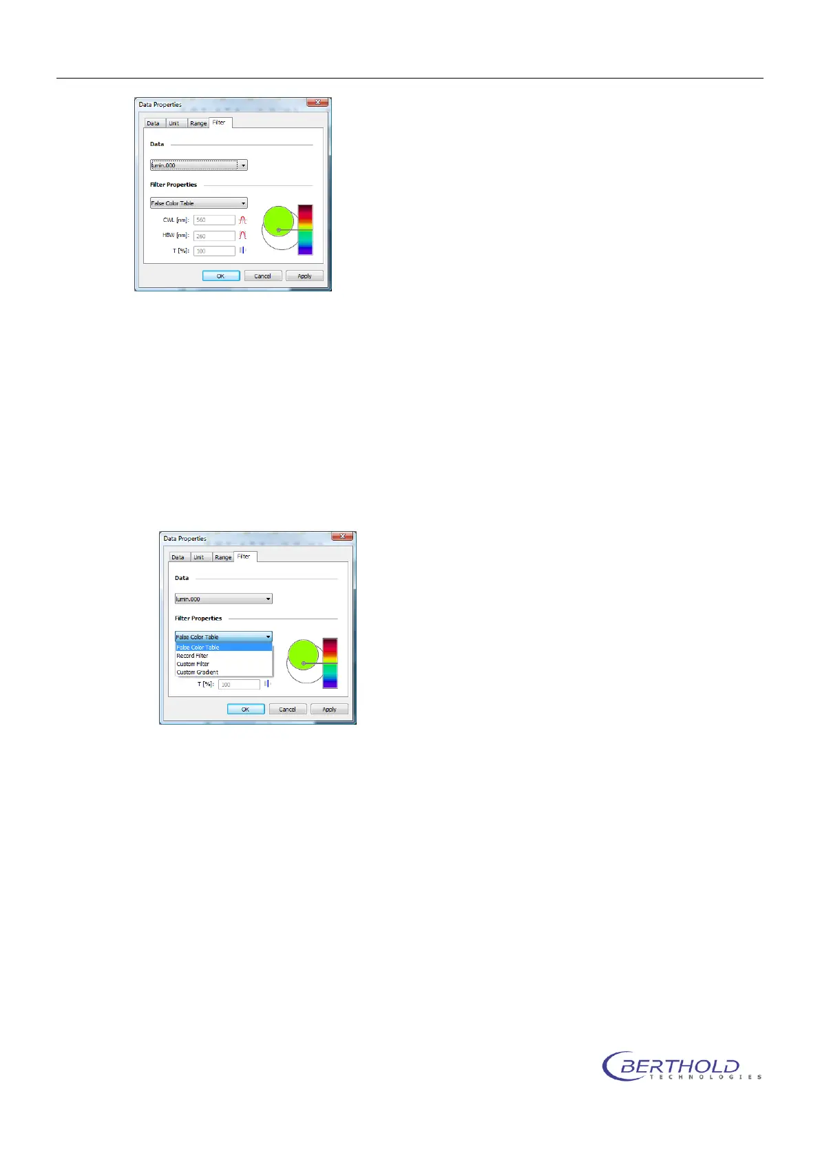 Enables the user to setup a custom filter, using a center wave length and a bandwidth.