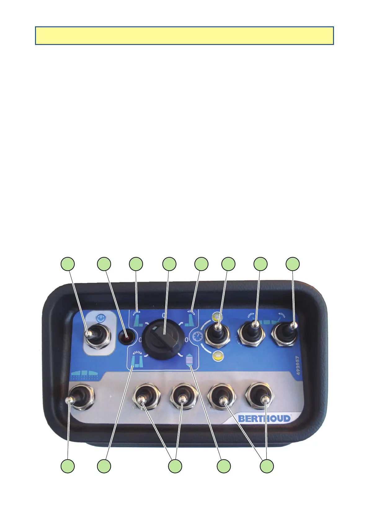 Note: The control box is protected by a 10 amp fuse, BERTHOUD reference 749.519.