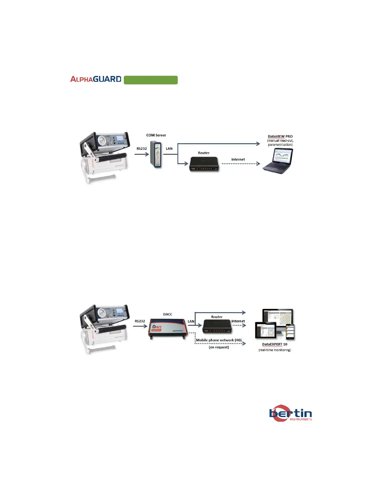 subsequently. For this solution the AlphaGUARD is connected via RS232 to the Data