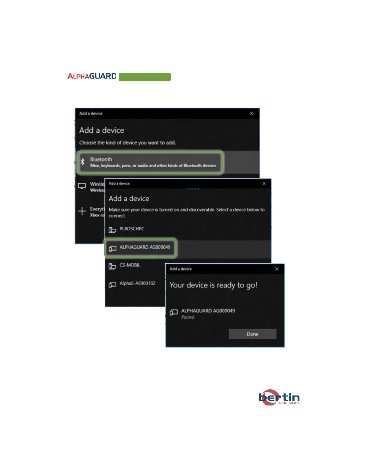4. Click on “Bluetooth” and then on “ALPHAGUARD AGXXXXXX” to pair the