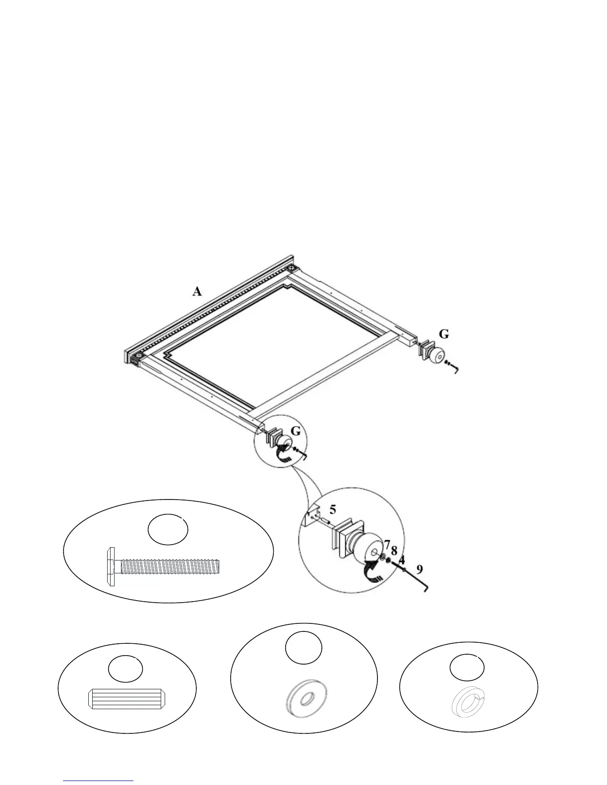 (5), flat washers (7) and spring washers (8). Use Allen key (9) to tighten the