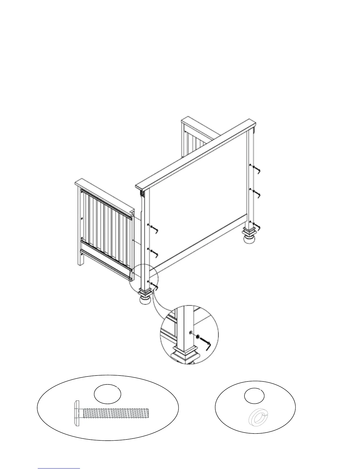 Attach right side panel (B) and left side panel (C) to the headboard (A) using