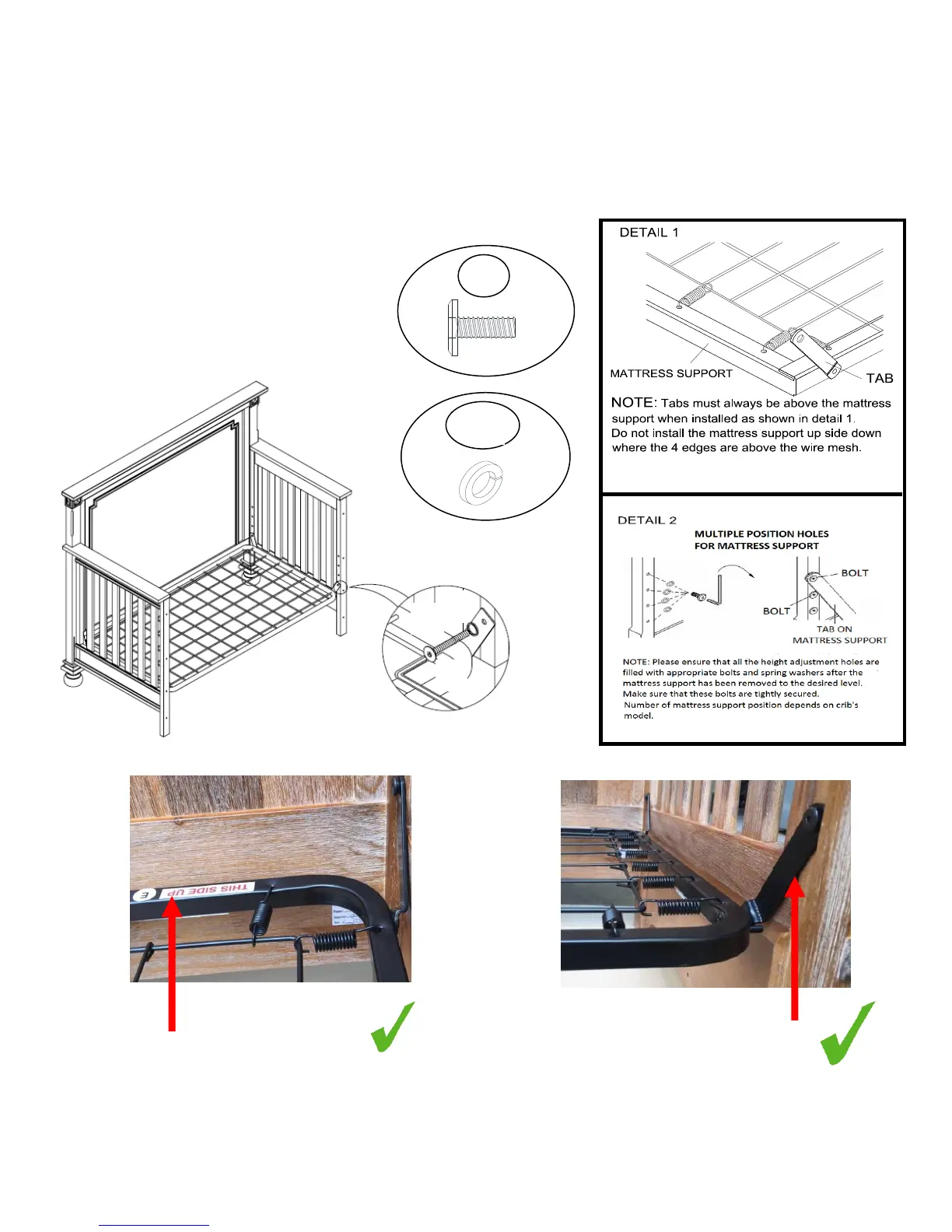 Attach mattress support (F) to the side panels (B & C) with mattress support