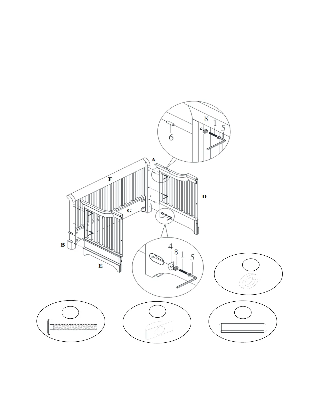 Attach the left side panel (D) to the left post (A) with bolts (1), curved nut (4) and spring